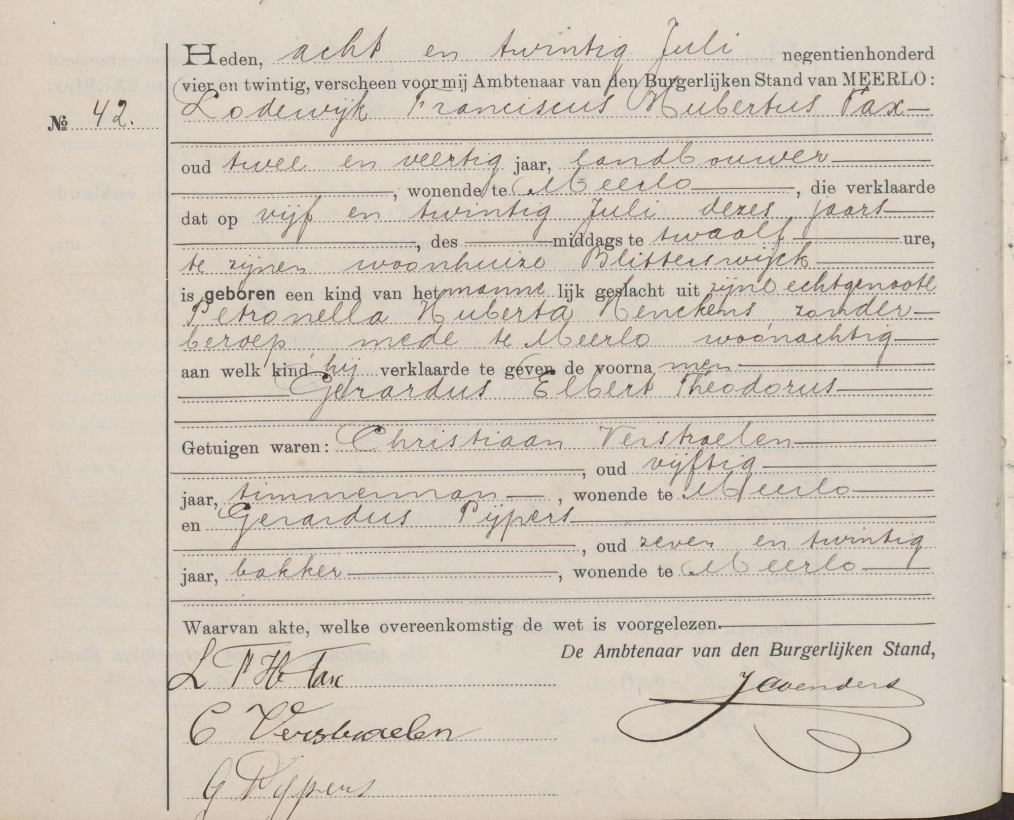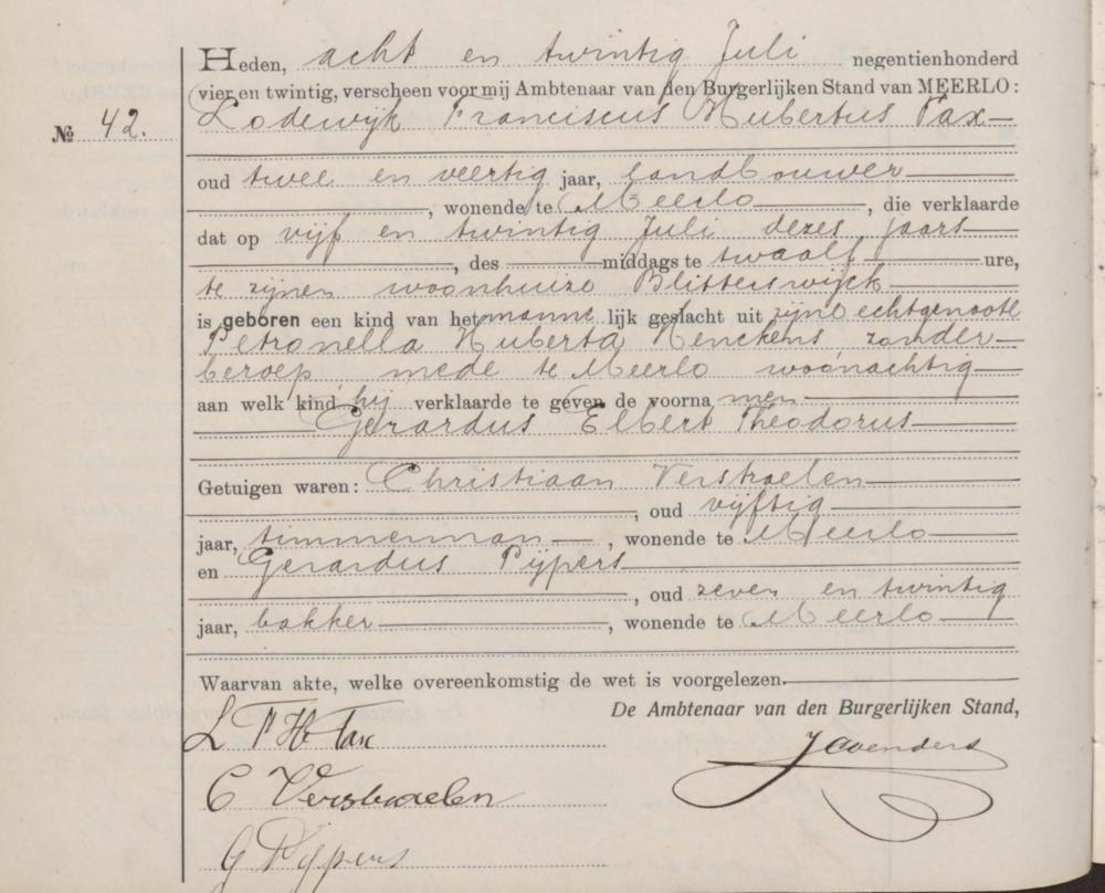 Bron: Geboorte Gerardus Elbert Theodorus Tax