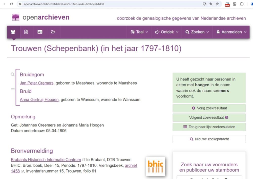 3. | bruidegom in | Trouwen Joannes Petrus Cremers | 20 apr 1806 |
