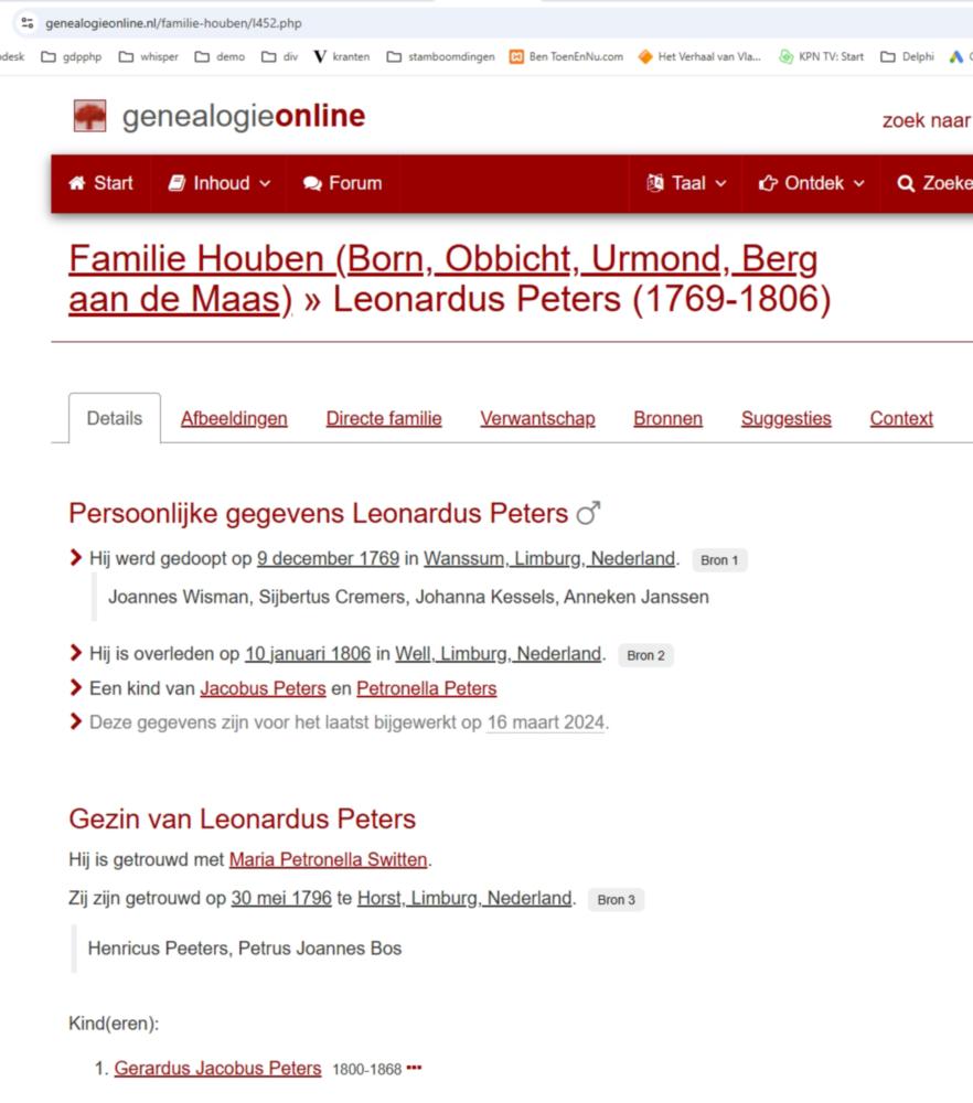 • Overleden: op 10 januari 1806 (of 1833 volgens het artikel) te Well