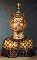 Had voor zijn eerste huwelijk een kind bij een maîtresse. Dit kind had een bochel. Het is mogelijk geen toeval, dat Einhard, Karels biograaf, van de lijst van echtgenotes en maîtresses, die Karel in zijn latere levensjaren had de naam wegliet van zijn eerste maîtresse en het feit dat deze zoon nooit een functie in het koninkrijk kreeg. Koning der Franken, koning der Longobarden 774, keizer van het Romeinsche Rijk, door paus Leo III te Rome gekroond 25-12 -800.