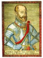 Herr v.Purmerend, Hoogwoude, Aartswoude, Fiennes, Sotteghem, Armentieres und Auxy, 1541 in Algerien, 1549 Ritter vom Orden des Goldenen Vliesses, 1552 Gouverneur von Luxemburg, 1553 Reichsfürst v.Gavre, 1559 Statthalter von Flandern und Artois, 1562 Verkauf v.Baer, 1565 Sprecher der Opposition in Madrid, 1565 Herr v.Gaesbeck, 9.9.1567 von Alba gefangengenommen, enthauptet auf dem Marktplatz zu Brüssel. Lamoraal I, vierde graaf van Egmont, heer van Purmerend, Hoog- en Aartswoud(e), Fiennes, Sotteghem, Armentières en Auxy en (sinds 1553) prins van Gavere, stamde uit een van de rijkste en invloedrijkste families in de Nederlanden, voortgekomen uit de 'advocati' (= voogden) van de abdij van Egmond, die nabij het kasteel stond. Al tijdens zijn jeugd kreeg hij een militaire opleiding in Spanje. Hij huwde op 8 mei 1544 met Sabina van Beieren (1528-1578), dochter van Johan II van Palts-Simmern en Beatrix van Baden, waarmee hij zijn rijkdom nog verder vergrootte. Met Sabina kreeg hij 11 kinderen. Van het laatste kind wist hij niet. Toen het bekend werd was hij al opgesloten en gestuurde brieven werden ongeopend teruggestuurd. Egmont was sinds 1544 ridder van het Gulden Vlies. Hij nam dienst in het Spaanse leger en versloeg de Fransen achtereenvolgens in Saint-Quentin (1557) en Grevelingen (1558). Na deze veldslagen stond hij in zo’n hoog aanzien bij de Spaanse koning, dat hij namens de koning naar Engeland vertrok om de hand van de Engelse koningin Elizabeth I te vragen voor Filips II. Als beloning voor zijn trouw werd Egmont in 1559 benoemd tot stadhouder van Vlaanderen en Artesië. Als edelman maakte Egmont deel uit van de Raad van State. Samen met Willem van Oranje en de graaf van Horne (Driemanschap of Ligue der Groten, 1562) verzette hij zich tegen kardinaal Antoine Perrenot Granvelle, bisschop van Atrecht, die de inquisitie (vervolging van de protestanten) invoerde in Vlaanderen. In een brief aan Filips II (11 maart 1563) bood het Driemanschap hun ontslag aan als Granvelle niet zou vertrekken. Na het vertrek van Granvelle in 1564 verzoende Egmont zich opnieuw met de koning. Op aandringen van de Raad van State vertrok Egmont in 1565 naar Spanje om Filips II de verlangens van de hoge adel over te brengen (Brieven uit het bos van Segovia). Tevens lichtte hij, samen met de Graaf van Megen, de landvoogdes Margaretha in over het Compromis. Kort daarna brak de Beeldenstorm (10 augustus 1566) uit en werd het verzet tegen de Spaanse overheersing in de Nederlanden groter. Als overtuigd katholiek keurde Egmont de Beeldenstorm ten zeerste af en hij zwoer andermaal trouw aan de Spaanse koning. Na de Beeldenstorm stuurde Filips II de hertog van Alva naar de Nederlanden om orde op zaken te stellen. Willem van Oranje ontvluchtte hierop Brussel; Egmont en Horne besloten niet te vluchten. Vrijwel direct na zijn aankomst liet Alva de graaf van Egmont, zijn secretaris Jan van Casembroot en de graaf van Horne onder een vals voorwendsel - Alva had een overleg aangekondigd om bij een maaltijd over de situatie te praten - arresteren (9 september 1567). Direct na arrestatie werden ze naar Gent overgebracht en in het kasteel opgesloten. Egmont beriep zich vruchteloos op zijn voorrechten als ridder van de Orde van het Gulden Vlies. Ondanks de vele pogingen om zijn onschuld te bewijzen werd hij wegens hoogverraad in december voor de Raad van Beroerten gebracht. Hoewel Egmont tot het einde toe katholiek bleef en trouw bleef aan de Spaanse koning, werd hij samen met Van Horne op last van Alva ter dood veroordeeld. Willem van Oranje trok zijn lessen uit de situatie en werd als Willem de Zwijger de spil van het verzet tegen de koning. Toenadering kwam er met de Unie van Brussel, maar als de Franstalige gewesten zich min of meer achter de koning scharen met de Unie van Atrecht ten koste van de eenheid van de Nederlanden (waarbij de Nederlandstalige Nederlanden zich verzamelen in de Unie van Utrecht), was het hek helemaal van de dam, en koos het verzet rond Willem van Oranje voor een oplossing buiten de Spaanse context: de onafhankelijkheid van de Republiek der Verenigde Nederlanden. Egmont en Horne werden in 1567 en 1568 opgesloten in het Spanjaardenkasteel te Gent. Op 5 juni 1568 werden de edelmannen op de Grote Markt van Brussel onthoofd. Hun dood leidde tot grote protesten in de Nederlanden en heeft bijgedragen aan het openlijke verzet tegen de Spanjaarden. Het gebalsemde lichaam van de Graaf van Egmont ligt, samen met zijn vrouw Sabina (overl. 1578), begraven in de crypte van de kerk van Onze-Lieve-Vrouw Tenhemelopneming te Zottegem. De harten van hun oudste zoon Filips (overl. 1590) en zijn jongere broer Karel (overl. 1620) liggen met dat van hun vader in een bronzen koffer.