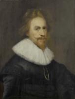 CBG Jaarboek 1948, pag. 188 e.v. Wijbrand Simonsz de Geest werd in 1592 geboren als zoon van Simon Juckes de Geest, glasschilder en stadsbode, en Wyts Wybranddr; 16 October 1622 trouwde hij "Hendrikien Ulenburchs", een achternicht (geen zuster) van Saskia van Uijlenburg, die in 1630 met Rembrandt in het huwelijk trad. De Geest beleed de Katholieke godsdienst. Zie hierover: Dr. A. Wassenbergh, Reisindrukken van den Franschen Gezantschapsecretaris Charles Ogier uit Friesland en Groningen in het jaar 1636, in: de Vrije Fries, deel 37. De Portretkunst in Friesland in de 17e eeuw D.A. Wassenbergh Juist in de overgang van het Fries Stadhouderschap keert een jong Fries schilder, na lange jaren in Frankrijk en Rome verbleven te hebben, zoals blijkt uit een in de Provinciale Bibliotheek van Friesland bewaard album amicorum, naar zijn geboortestad Leeuwarden terug. Deze meester, de 23-jarige Wijbrand de Geest, de Friese Adelaar, zoals de bent hem in Rome noemde, beschikte over een vlot talent, een talent dat niet alleen bij de Friese adel en burgerij, maar ook bij de mensen van het Hof ten zeerste in de smaak zou vallen. Spoedig reeds na zijn terugkomst krijgt De Geest gelegenheid zijn talent te tonen. In 1621 schildert hij de portretgroep van de Leeuwarder familie Verspeeck, thans in het museum te Stuttgart, en schept daarmede een van zijn meesterwerken. Spoedig beginnen de opdrachten van het Stadhouderlijk Hof en de Friese adel te komen. In 1625 ontstaan de grote kniestukken van Jurjen van Ripperda (met de fraaie handschoenen) en die van zijn vrouw Catharina van Dekema (afb. 9 en I0), welke behoren tot de collectie der familie Van Wageningen op Dekama State te Jelsum. In hetzelfde jaar komt, voor zover wij uit de bestaande portretten kunnen nagaan, de eerste opdracht van het Stadhouderlijk Hof en schildert De Geest het charmante portret van Prinses Elisabeth op de leeftijd van 4 jaar en 5 maanden: zij is hetzelfde prinsesje dat twee jaren tevoren door Moreelse was geportretteerd. Terwijl kinderen in deze tijd steeds ten voeten uit worden geschilderd, was dit met volwassenen veel minder het geval en volstond men met borst- of kniestuk. In 1628 echter schildert De Geest ten voeten uit het levensgrote portret van Gerrolt van Juckema, thans op Epema-State te IJsbrechtum, en opent daarmede een reeks van portretten van dit genre, zowel levensgroot als in klein formaat, in een aantal zoals wij dat in geen andere provincie van ons land aantreffen. Het waren vooral de Friese Stadhouders en de officieren die zich op deze wijze lieten portretteren. In klein formaat komen zij in vele verzamelingen voor: in de collectie van wijlen Dr. van Aalst: de fraaie portretten van Ernst Casimir, Sophia Hedwich van Brunswijk la) en Johan Ernst van Nassau-Siegen, alle gesigneerd en gedateerd 1631; het Oranje-Nassau Museum te 's-Gravenhage is in het bezit van de portretten van Hendrik Casimir I (gesigneerd en gedateerd 1638) en van Willem Frederik, terwijl een groot aantal afbeeldingen van stadhouders en officieren uit de vroegere collectie van Sminia te Bergum, thans nog grotendeels bij de erfgenamen aanwezig is. Levensgrote portretten ten voeten uit, geschilderd in de trant van het portret van Juckema te IJsbrechtum, bevinden zich op Harinxma State te Beetsterzwaag en stellen voor Sophia van Vervou (1632) en haar man Wytze van Cammingha (1634). Uit deze tijd ongeveer zijn ook de grote afbeeldingen van Ernst Casimir en Hendrik Casimir 1 uit het Rijksmuseum en de portretgroepen van leden van de huizen Nassau-Siegen en Nassau-Dietz aanwezig op het Hof te Leeuwarden en in het Friesch Museum. Reeds in de 16e eeuw zijn in Friesland portretten ten voeten uit geschilderd, zoals die van Kempo van Martena (omstr. 1530). Worp van Ropta (1543) en van een dochter van Wilcko Holdinga en Haring van Roorda uit het einde dier eeuw. Het blijft bij deze enkelingen en wij kunnen niet zeggen dat Wijbrand de Geest in 1628 op een Friese traditie teruggreep. Veeleer heeft hij zich aangesloten bij de Hollandse schilders als Michiel Jansz. Miereveld, Jan Anthoniusz. Ravesteyn, Evert Crynsz. van der Maes, Thomas de Keyser en anderen, die in het eerste kwart der 17e eeuw begonnen waren portretten ten voeten uit te schilderen. Er valt overeenkomst te bespeuren tussen het portret van Wytze van Cammingha in 1634 en,dat van Martin Day door Rembrandt van hetzelfde jaar, zonder dat hier directe gevolgtrekkingen uit zijn te maken. Het schijnt dat na 1640 de productiviteit van onze schilder is afgenomen. Uit 1645 kennen wij de Moreelse-achtige als herders geklede jongens van de collectie Van Welie te 's -Gravenhage, terwijl uit 1654 en 1659 respectievelijk de kinderportretgroep op Harinxma State te Beetsterzwaag en het grote ten voeten uit geschilderde damesportret uit het Rijksmuseum te Amsterdam, te noemen zijn. Bij deze opgave van hoofdwerken van De Geest zijn tot nu toe de portretten "en buste" buiten beschouwing gelaten: deze werden echter van den beginne af tot het laatst toe door hem vervaardigd. De eerste voorbeelden hiervan zijn de portretten van de schilder zelve en van zijn vrouw, Hendrikien van Uilenburgh (1629), beide sedert kort in het Friesch Museum als bruikleen van het Rijksmuseum, waar de schetsmatige portretjes van Hendrik Casimir I en Willem Frederik bewaard worden. Verder komen ze in vele particuliere collecties voor. Het Friesch Museum bezit een achttal van deze beeltenissen, waarvan die van Professor Johannes van der Sande ( 1638) en van Theodorus Saeckma van hetzelfde jaar de bekendste zijn. In de veiling bij Frederik Muller van 15 April 1947 waren het portret van Eva de Geest, de oudste dochter van de schilder (1652) en dat van een man, geschilderd in 1659. Laatstgenoemde is waarschijnlijk de echtgenoot van Eva, Adam Joseph Pynacker van Schiedam, waarmede ze volgens de gegevens van Dr. A. L. Heerma van Voss, 20 September 1658 in Dantumadeel trouwde. Het laatst gedateerde portret, dat ik van De Geest heb aangetroffen, draagt het ja