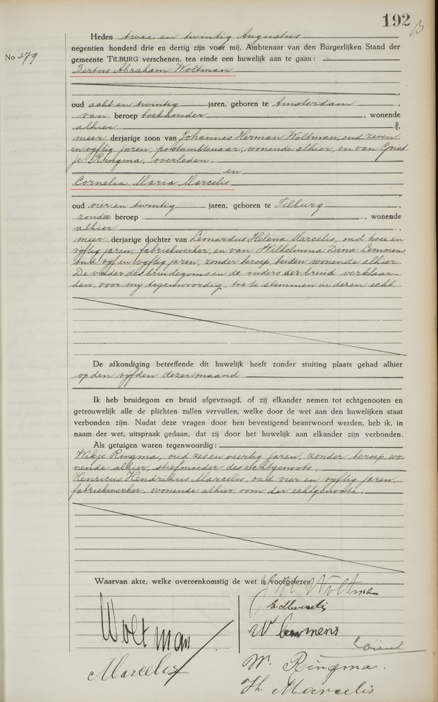 | vader bruidegom: | Johannes Herman Woltman | ||