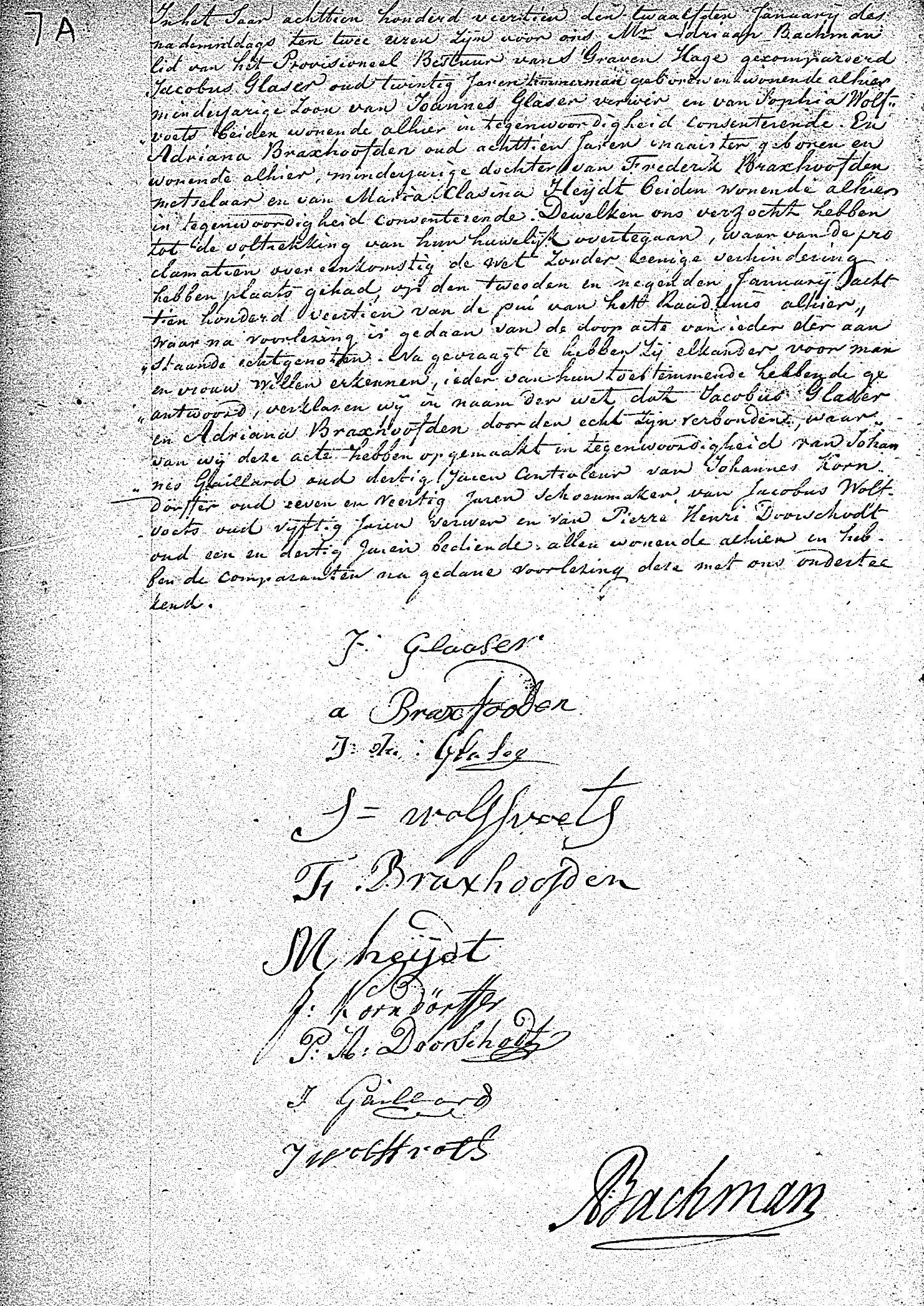 Bron: BS Huwelijksakte Jacobus Glaser en Adriana Braxhoofden