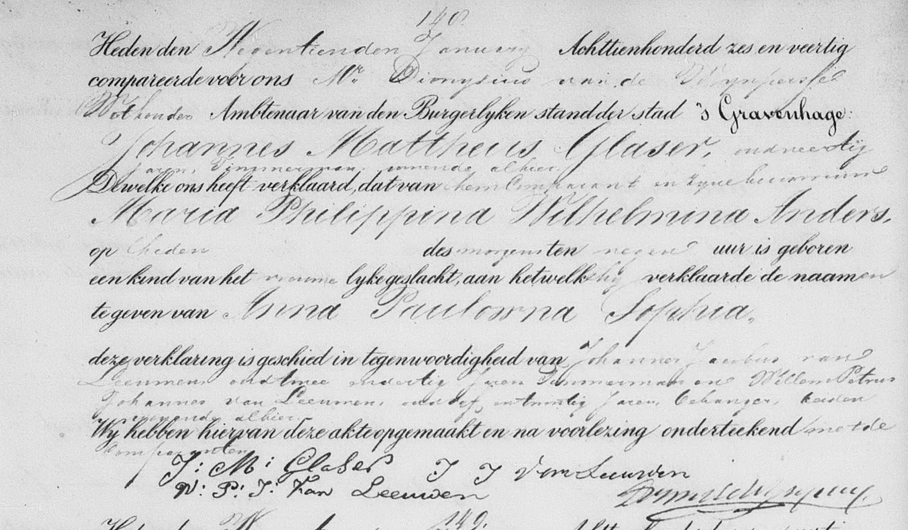 Bron: BS Geboorteakte Anna Paulowna Sophia Glaser