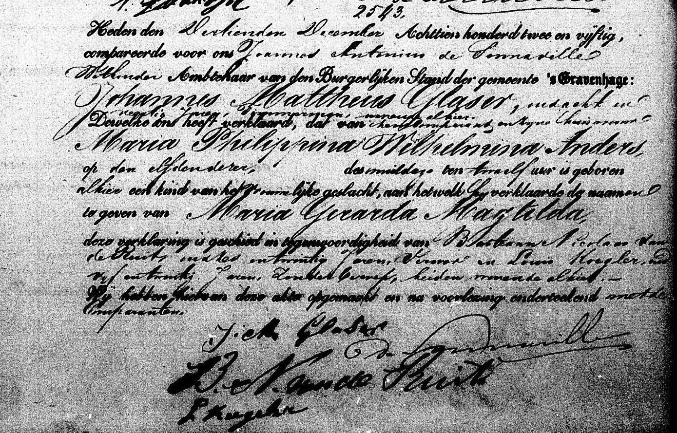 Bron: BS Geboorteakte Maria Gerarda Magtilda Glaser