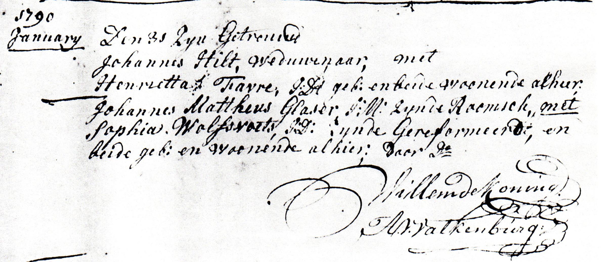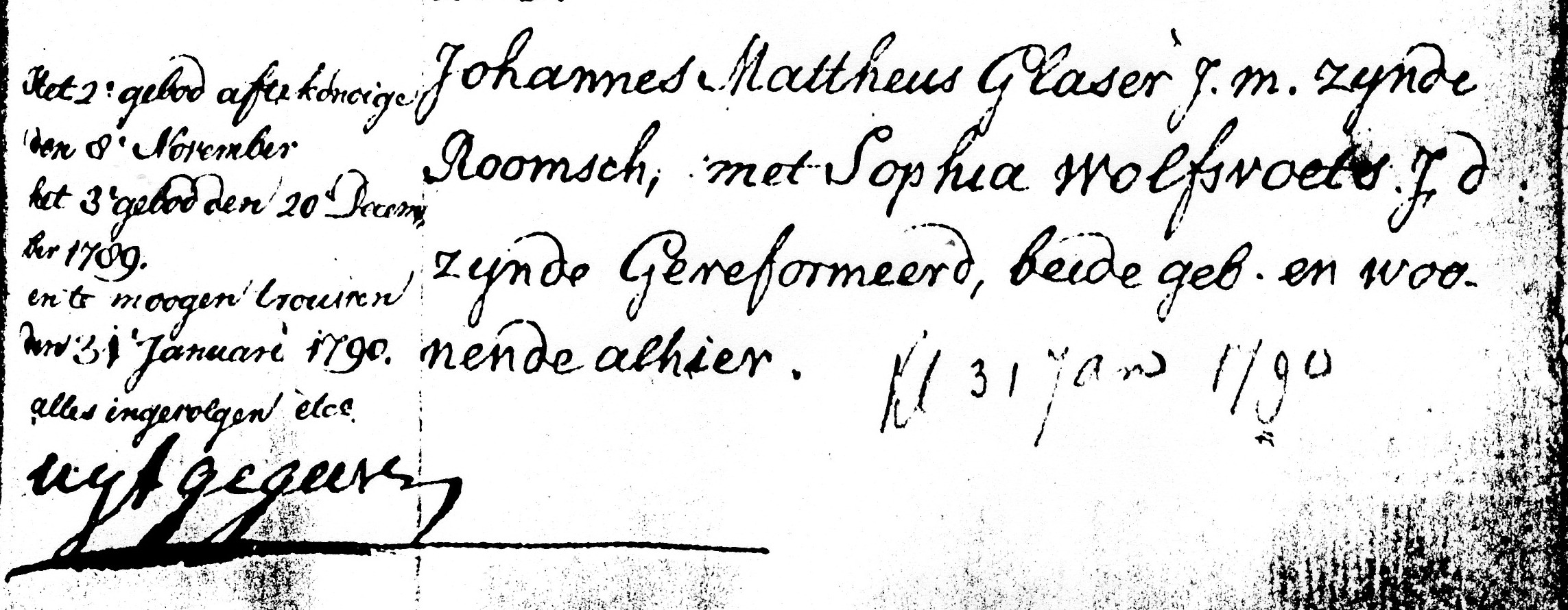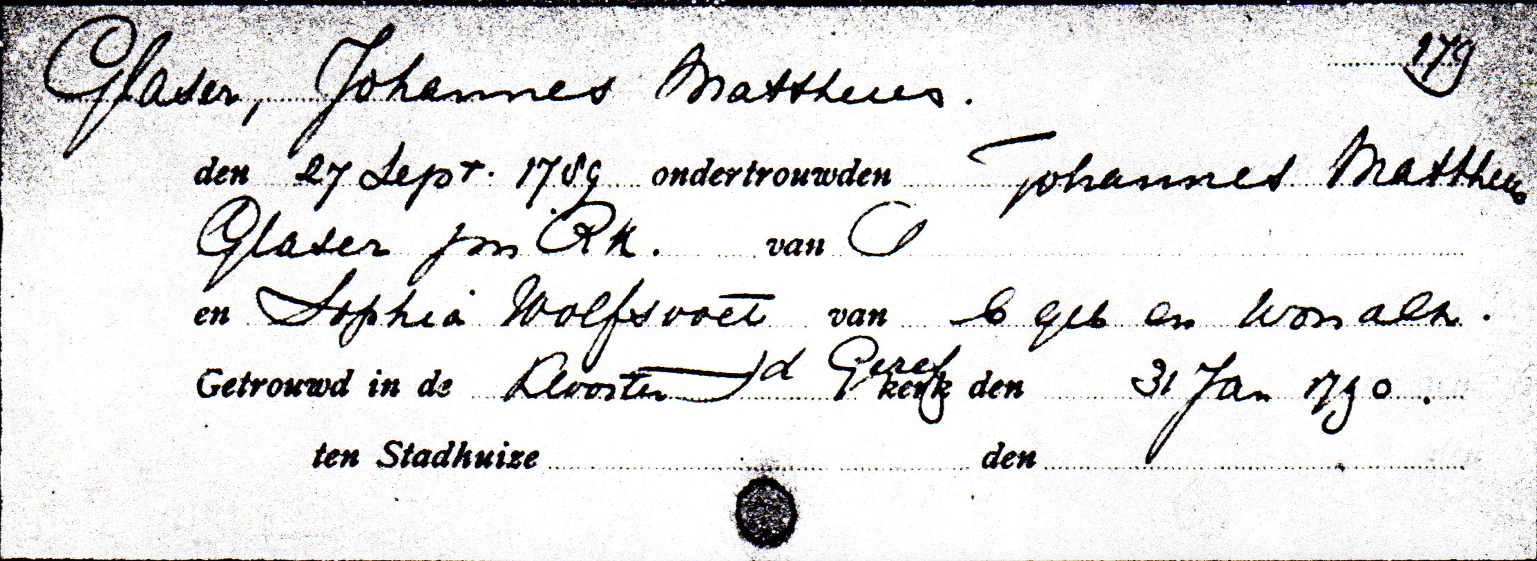 Bron: Trouwboek Johannes Matteus Glaser en Sophia Wolffoets