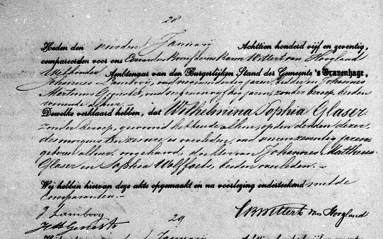 Bron: BS Overlijdensakte Wilhelmina Sophia Glaser