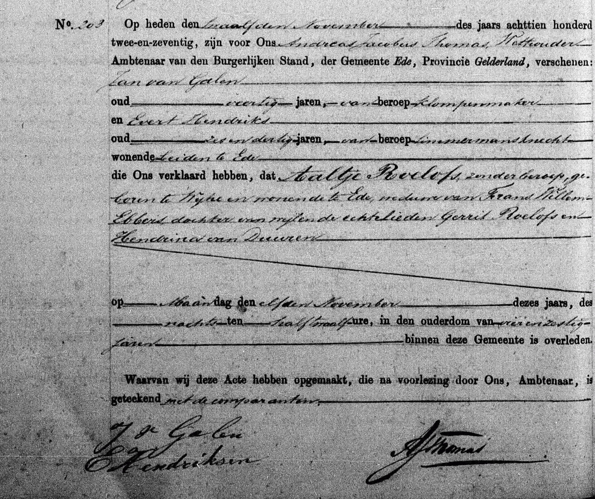 Bron: BS Overlijdensakte Aaltje Roelofs
