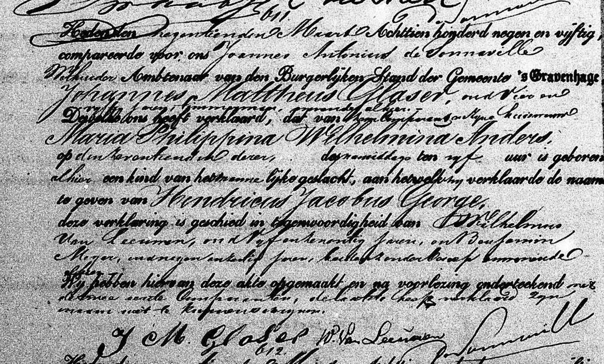 Bron: BS Geboorteakte Hendricus Jacobus George Glaser