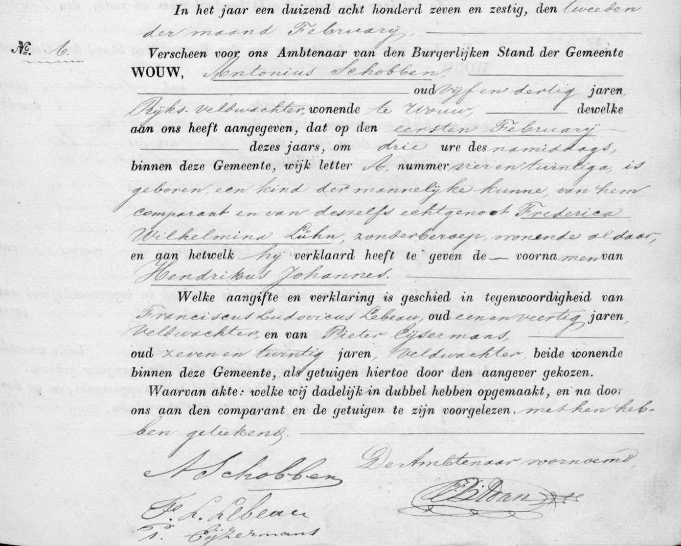 Bron: BS Geboorteakte Hendrikus Johannes Schobben