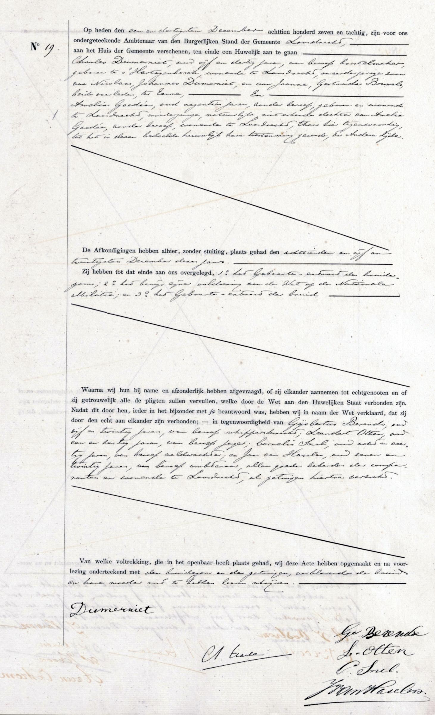 Bron: BS Huwelijksakte Charles Dumerniet en Amelia Goedée