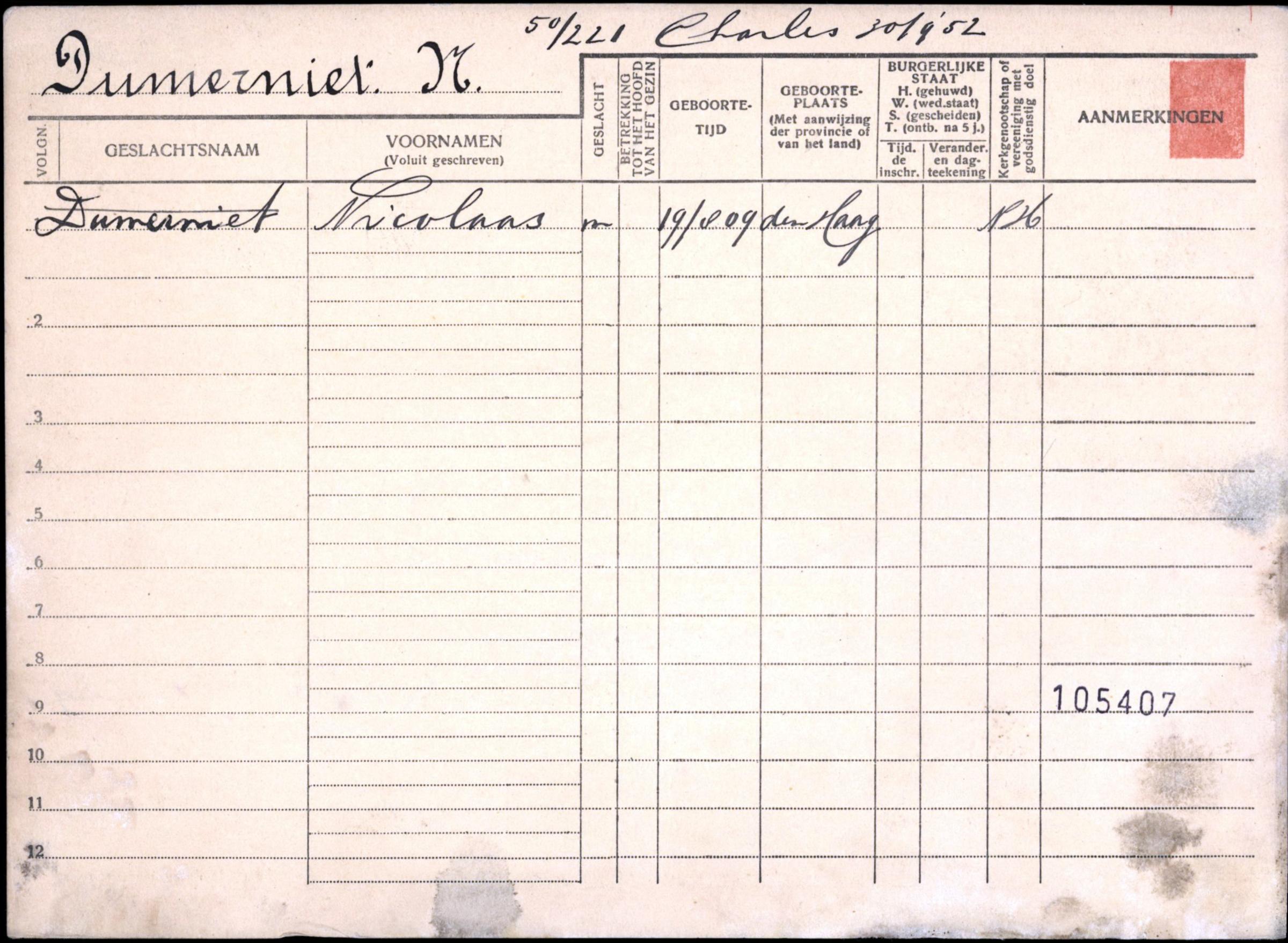 Bron: Bevolkingsregister Nicolaas Dumerniet