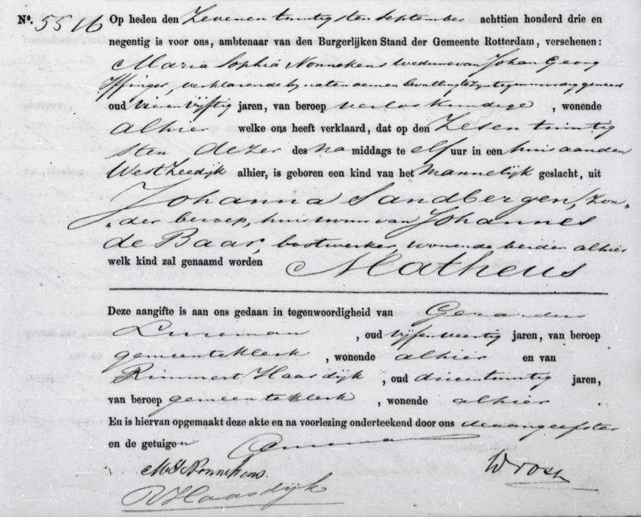 | vader: | Johannes de Baar Bootwerker te Rotterdam[Zh] op 26 september 1893 | 26 september 1893 | |