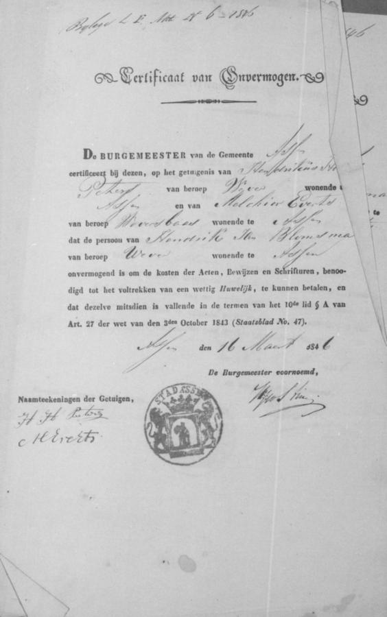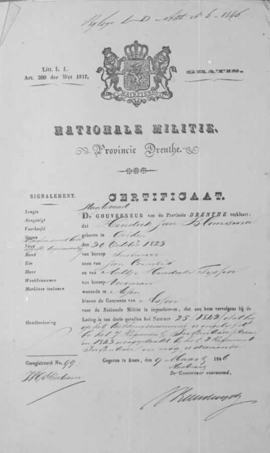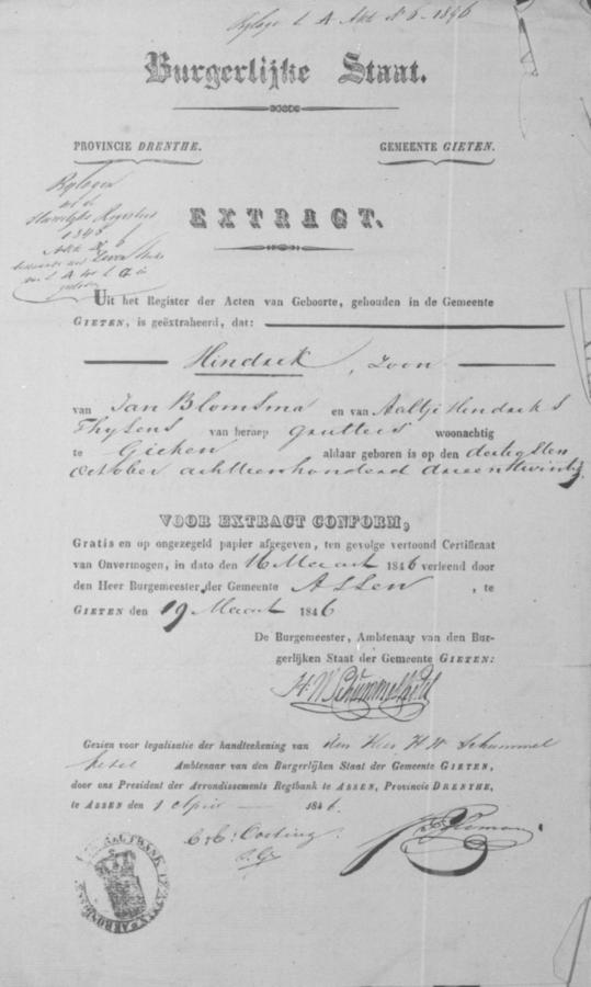 | vader bruidegom: | Jan Cornelis Blomsma Arbeider te Assen[Dr] op 5 april 1846 | 5 april 1846 | |