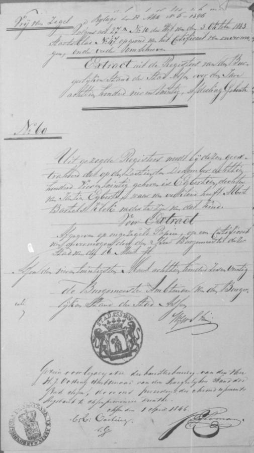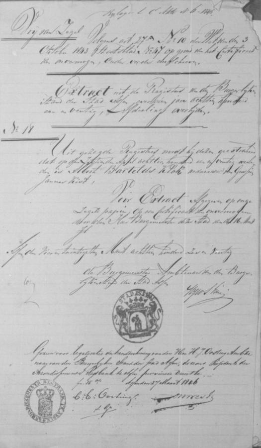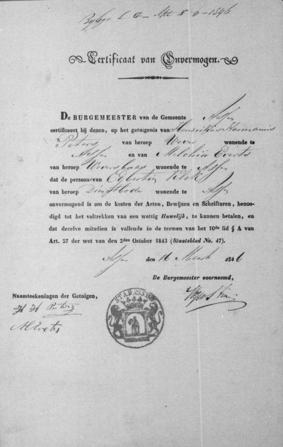 | bruid: | Egbertien Klok Dienstmaagd te Assen[Dr] op 5 april 1846 | 5 april 1846 | |