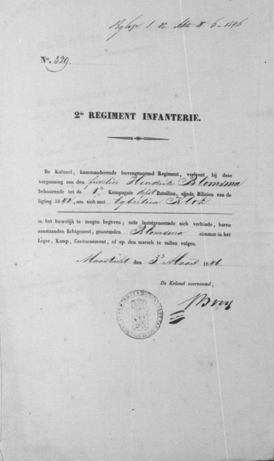 | bruidegom: | Hindrik Blomsma Wever te Assen[Dr] op 5 april 1846 | 5 april 1846 | |