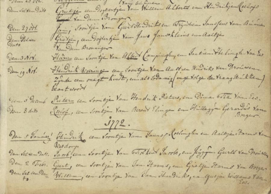 | kind: | Grietje Jans Speulman | 27 oktober 1771 | geschr. als Grietje Jans Kleins |