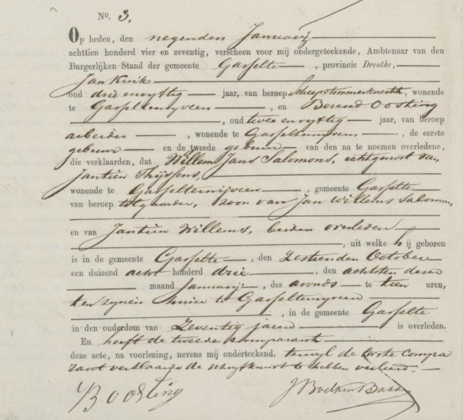 | overledene: | Wilm Jans Salomons Tolgaarder te Gasselternijveen[Dr] op 8 januari 1874 | 8 januari 1874 | |