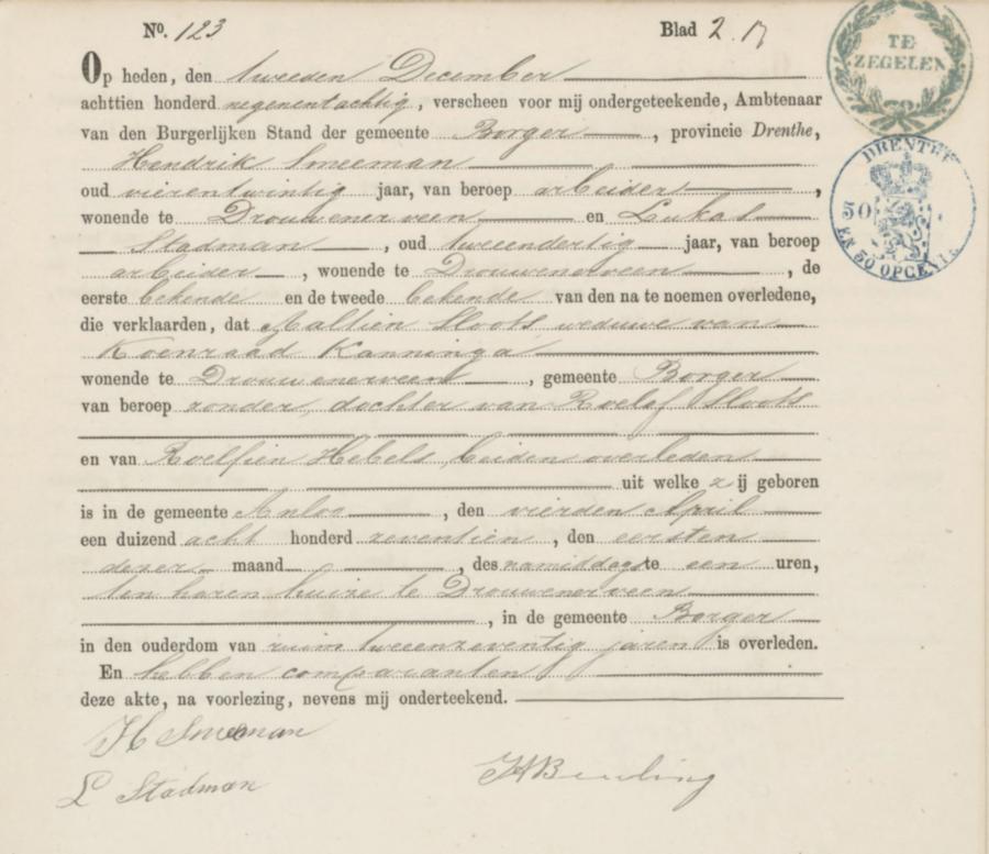 | overledene: | Aaltien Roelfs Sloots | 1 december 1889 | geschr. als Aaltien Sloots |