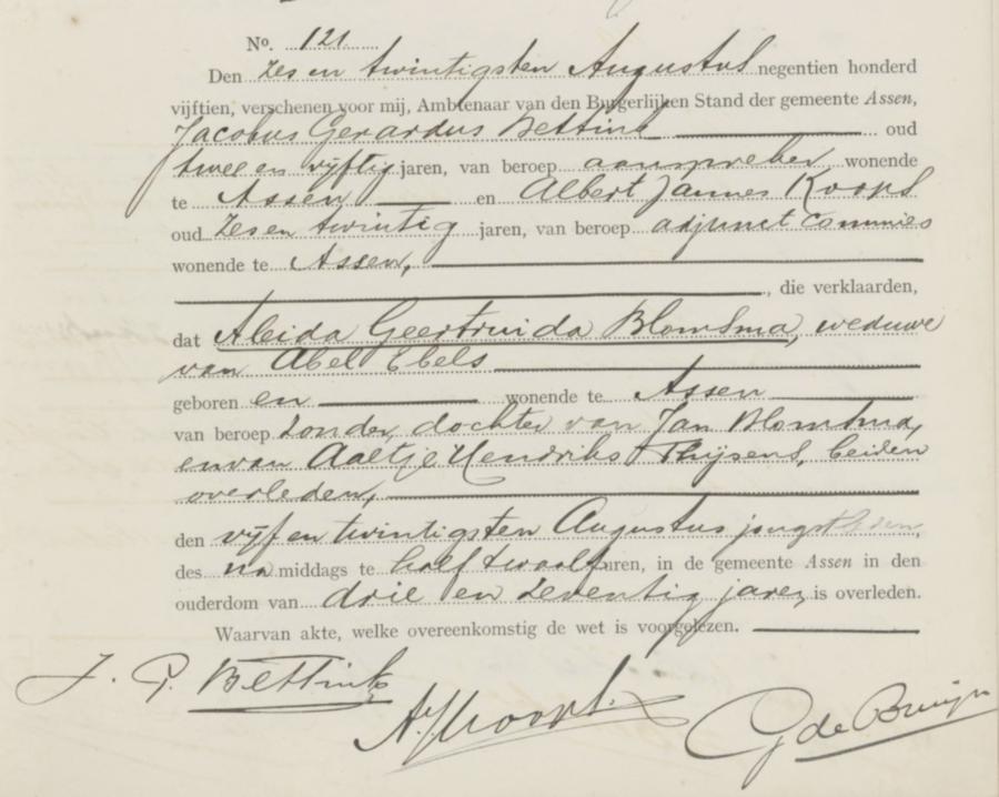 | overledene: | Aleida Geertruida Blomsma | 25 augustus 1915 | |
