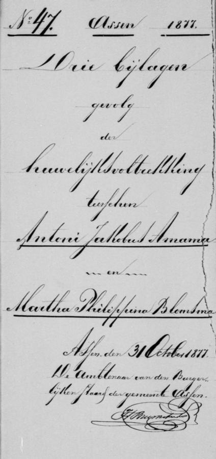 | echtpaar: | Antoni Jakobus Amama en Martha Philippina Blomsma | 31 oktober 1877 | |
