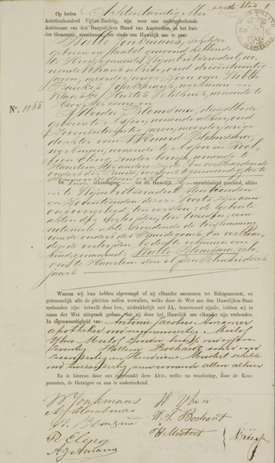 | bruidegom: | Walle Jonkmans Schilder te Amsterdam[Nh] op 28 mei 1885 | 28 mei 1885 | |