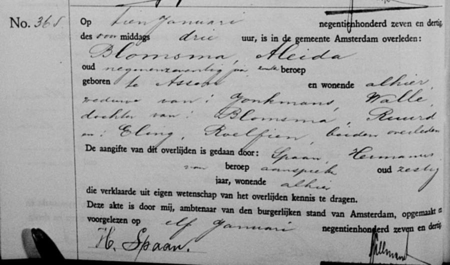 | overledene: | Aleida Blomsma | 10 januari 1937 | |