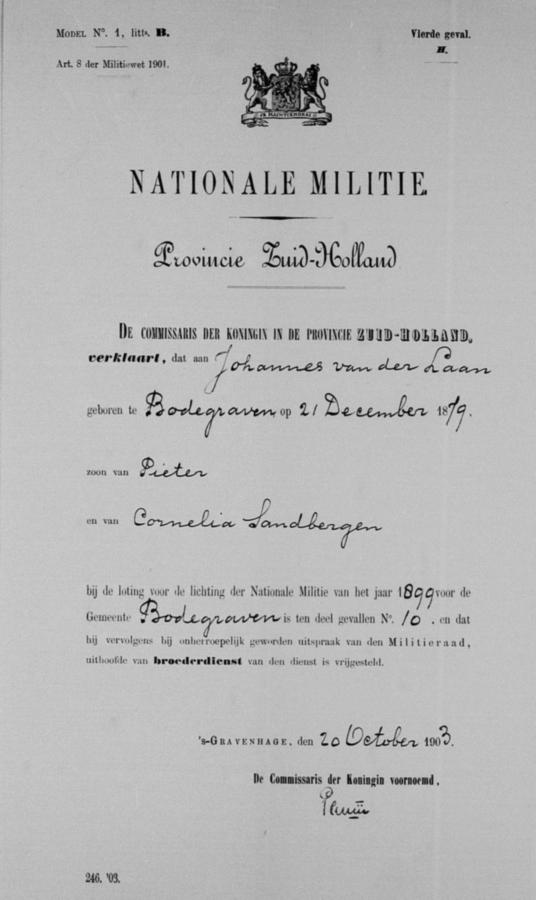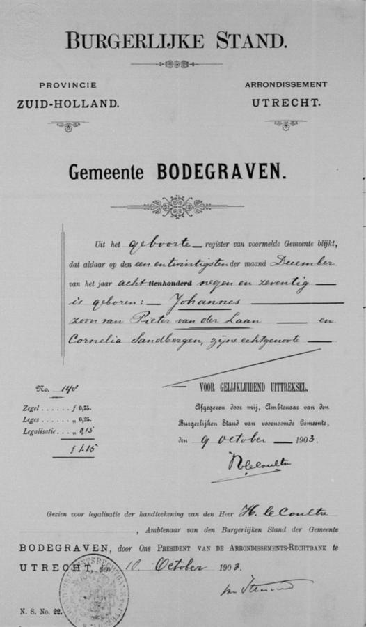 | bruidegom: | Johannes van der Laan | 5 november 1903 | |