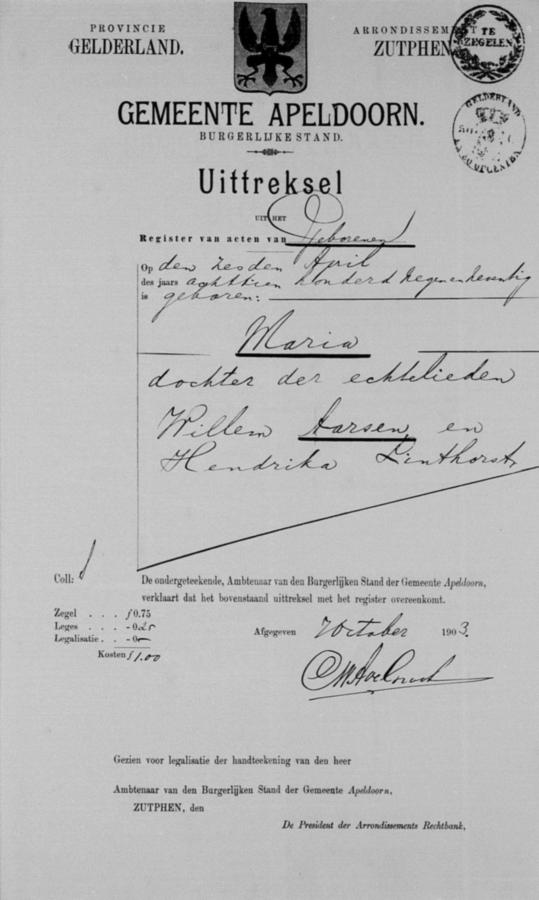 | bruid: | Maria Aarsen | 5 november 1903 | |