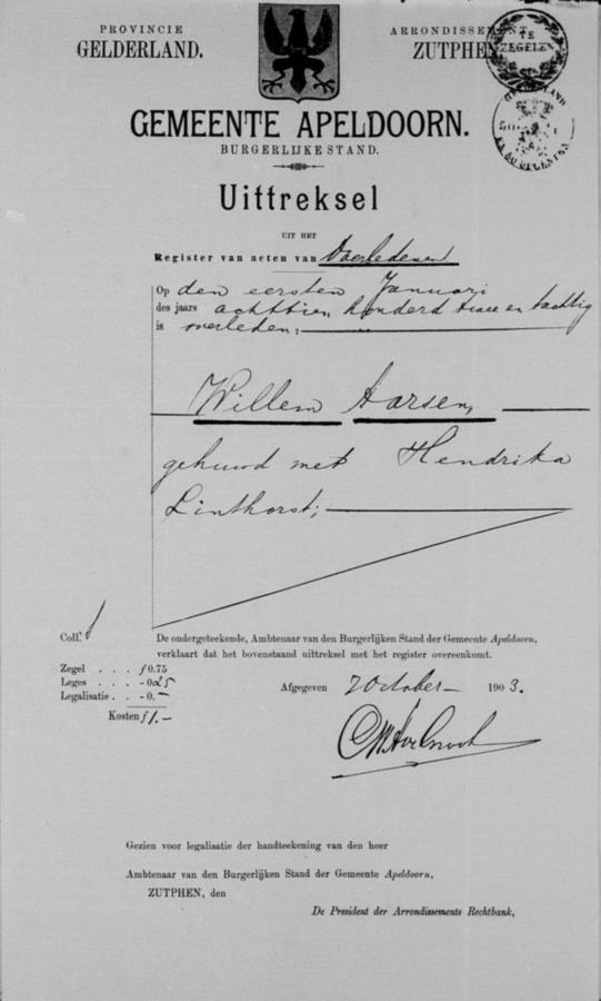 | ouders bruid: | Willem Aarsen en Hendrika Linthorst | 5 november 1903 |