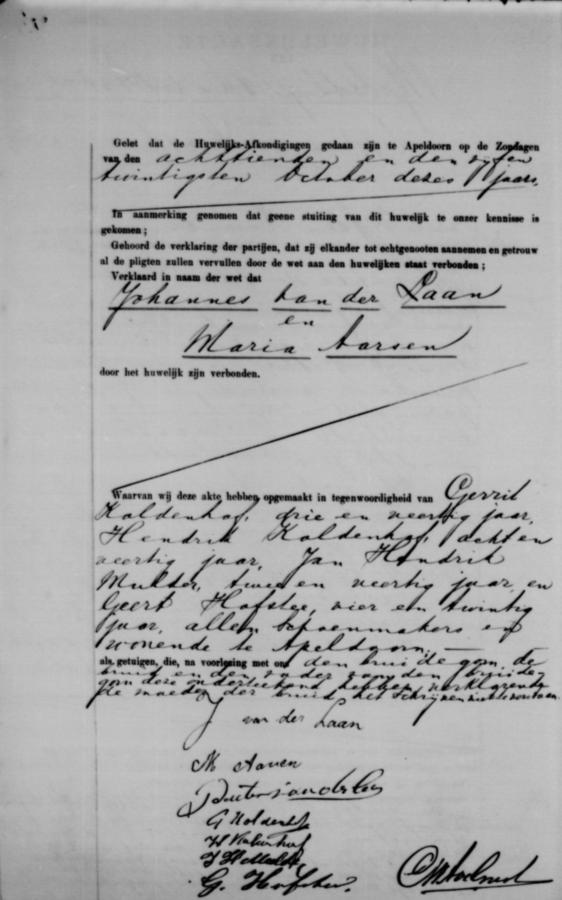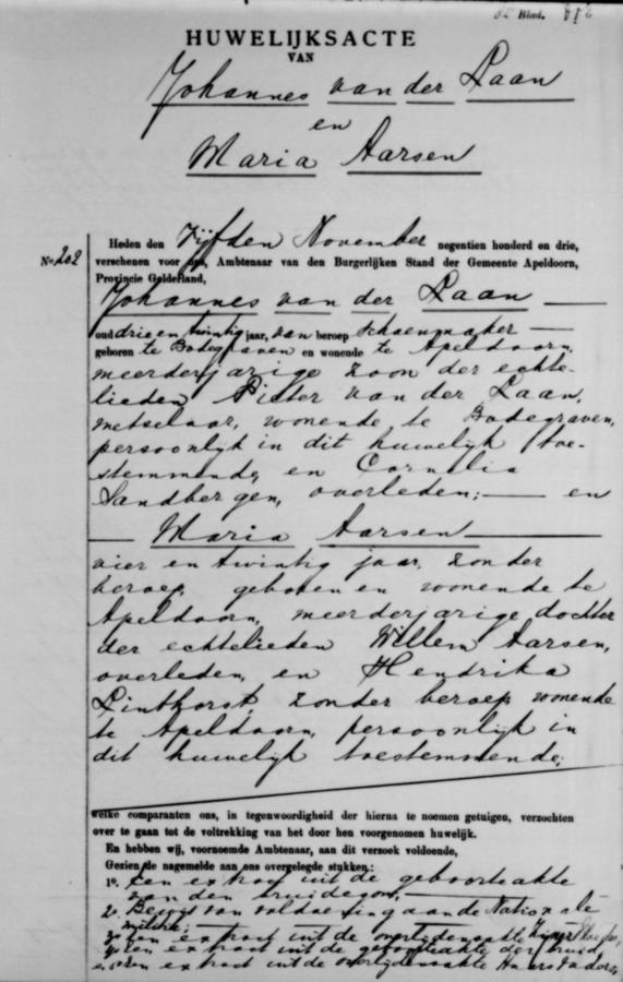 | bruidegom: | Johannes van der Laan Schoenmaker te Apeldoorn[Ge] op 5 november 1903 | 5 november 1903 | |
