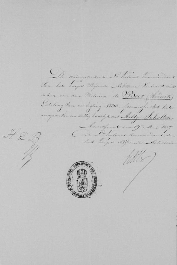 | bruidegom: | Hendrik Gerrits de Boer | 12 juli 1837 | geschr. als Hendrik de Boer |
