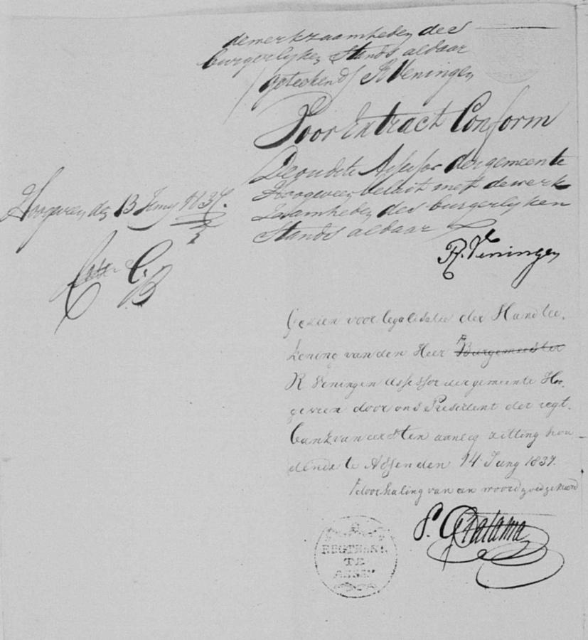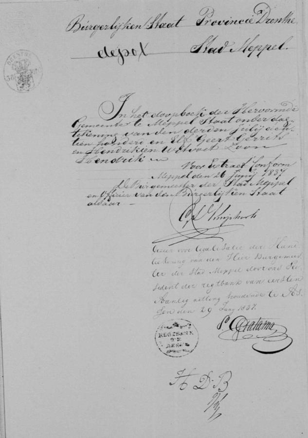 | bruidegom: | Hendrik Gerrits de Boer Wever te Meppel[Dr] op 12 juli 1837 | 12 juli 1837 | |