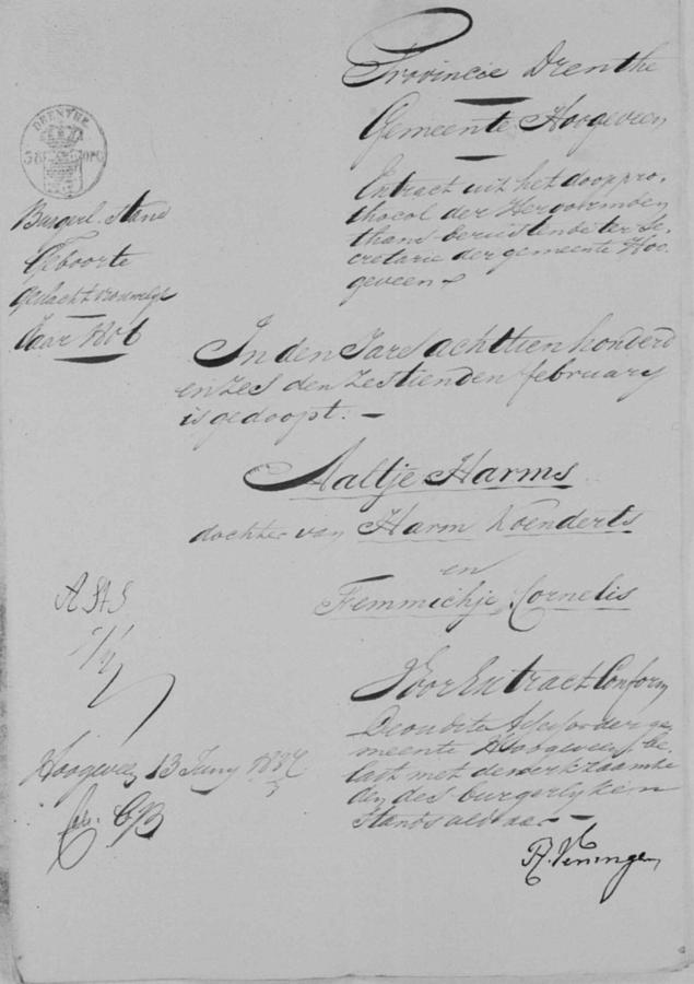 | echtpaar: | Hendrik Gerrits de Boer en Aaltje Harms Scholten | 12 juli 1837 | |