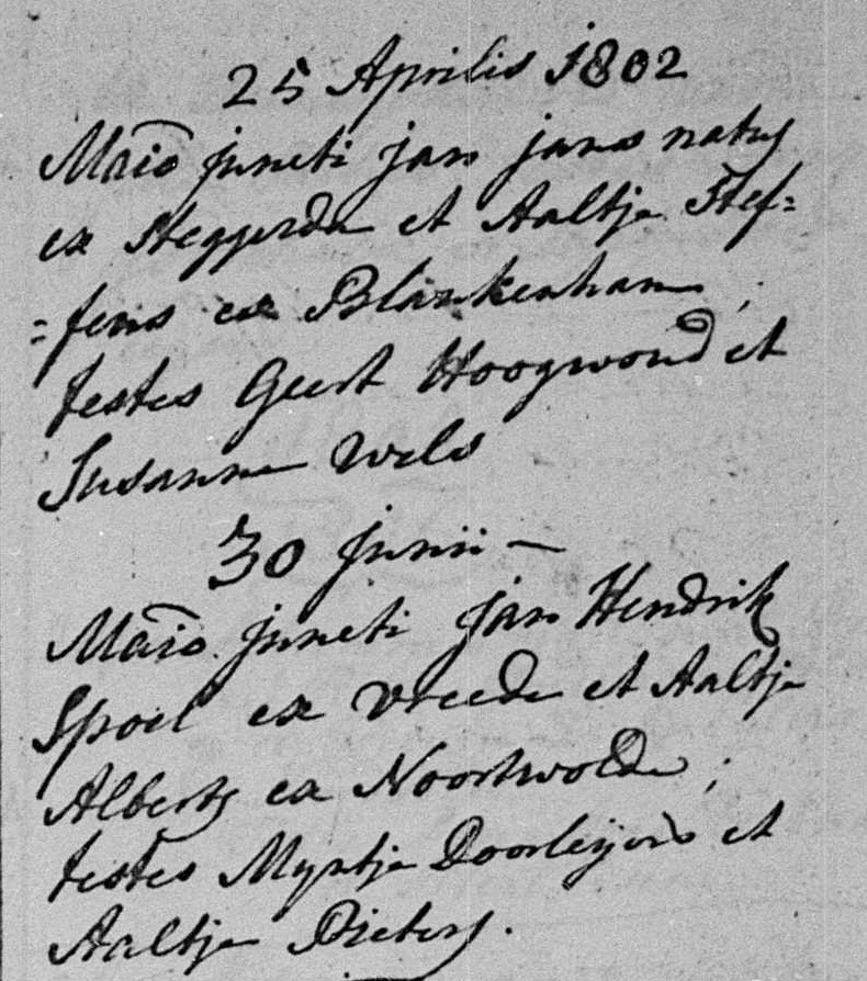 | echtpaar: | Jan Jans en Aaltjen Steffens van der Wolde | 25 april 1802 |
