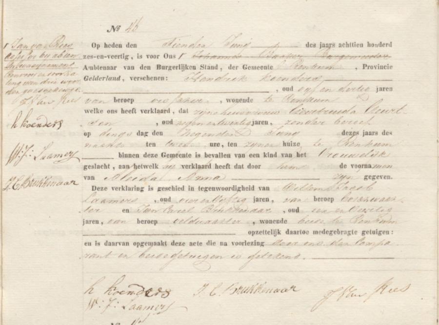 | moeder: | Geertruida Geurtsen Woont te Renkum[Ge] op 9 juni 1846 | 9 juni 1846 | |