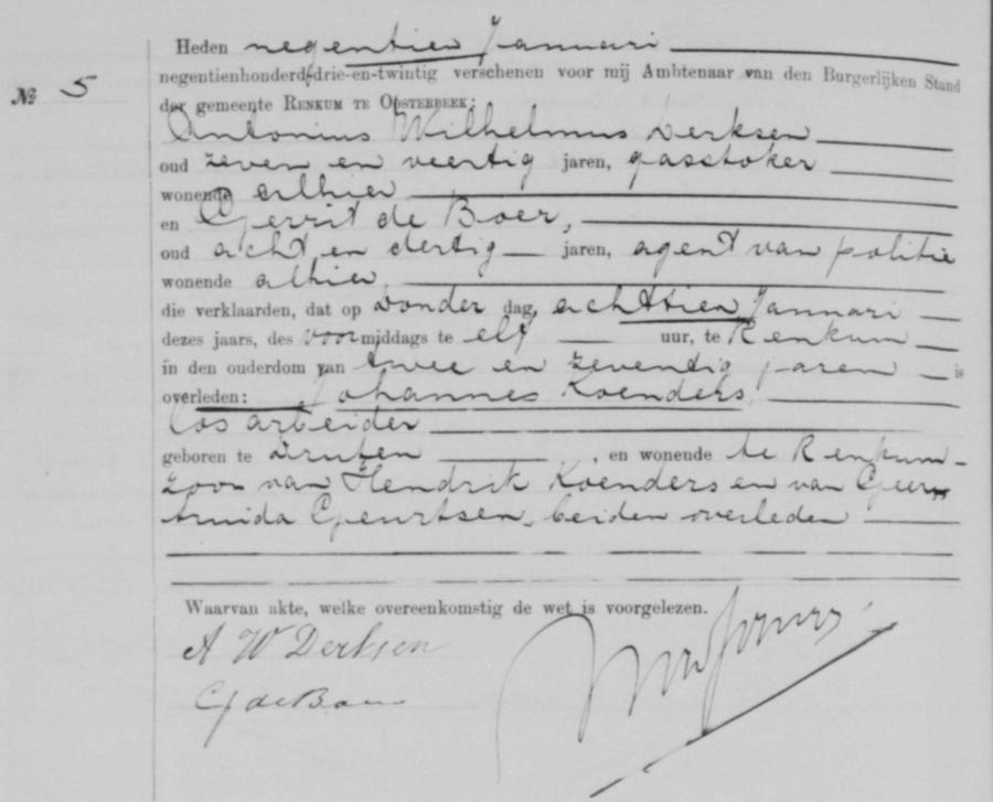| overledene: | Johannes Koenders los arbeider op 18 januari 1923 | 18 januari 1923 | |