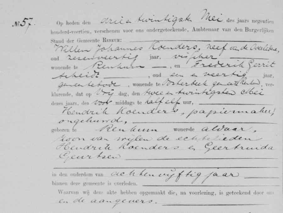 | overledene: | Hendrik Koenders Papiermaker te Renkum[Ge] op 22 mei 1914 | 22 mei 1914 | |