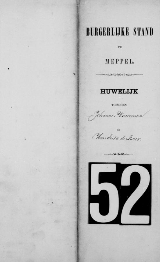 | bruidegom: | Johannes Kuurman Koopmansbediende te Meppel[Dr] op 9 november 1872 | 9 november 1872 | |