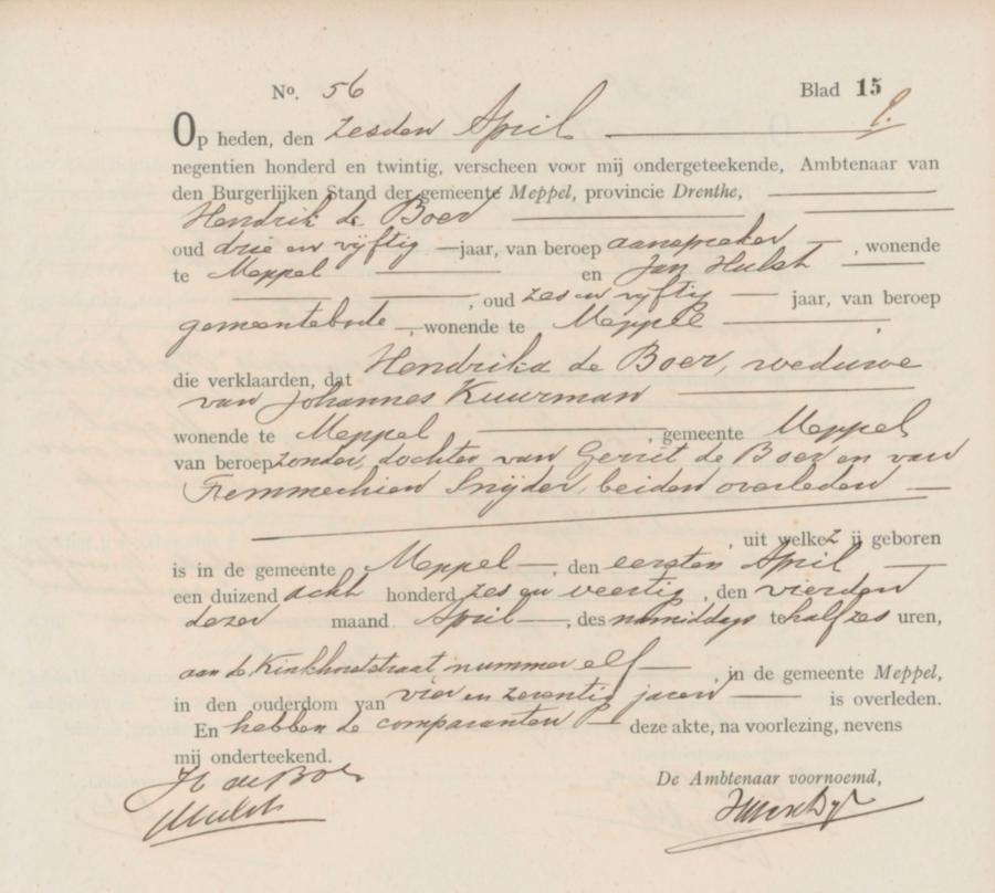 | overledene: | Hendrika de Boer | 4 april 1920 | |