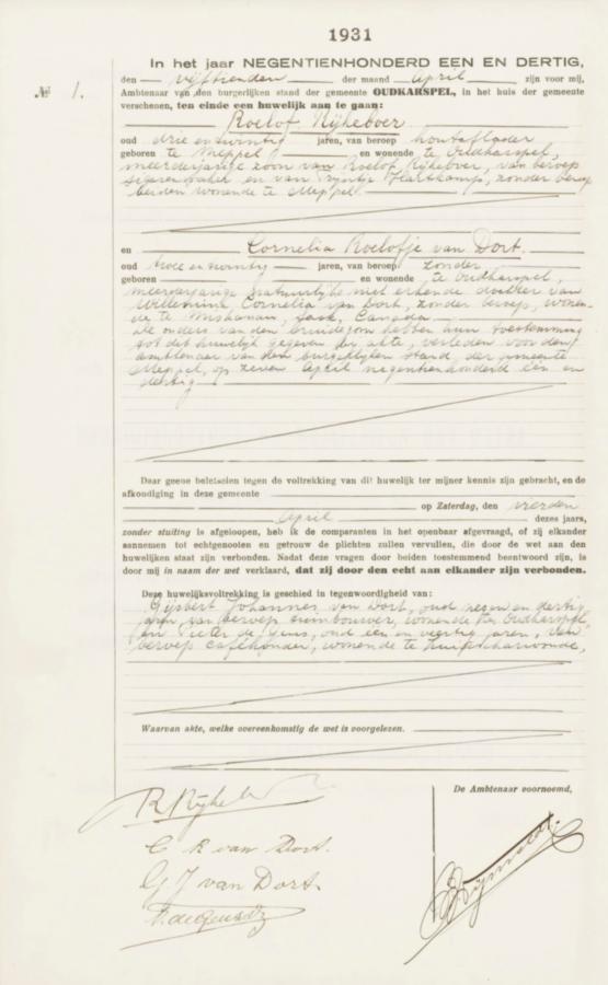 | bruid: | Cornelia Roelofje van Dort | 15 april 1931 | |