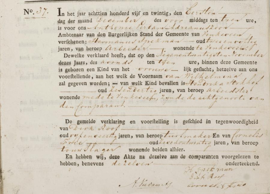 Bron: BS Geboorte Vinkeveen, akte 37, 01-12-1825