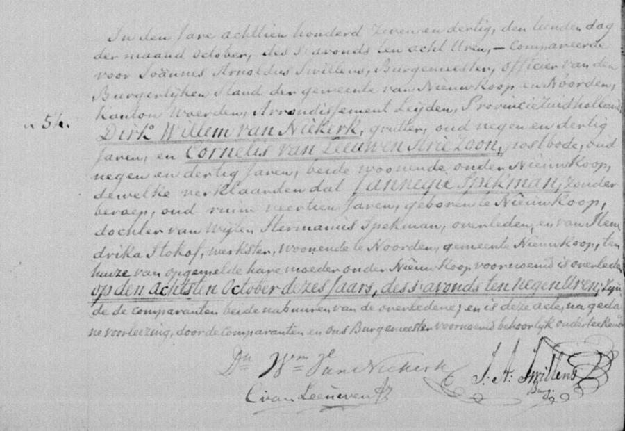 | overledene: | Jansje Spekman | 8 oktober 1837 | geschr. als Jannegie Spekman |