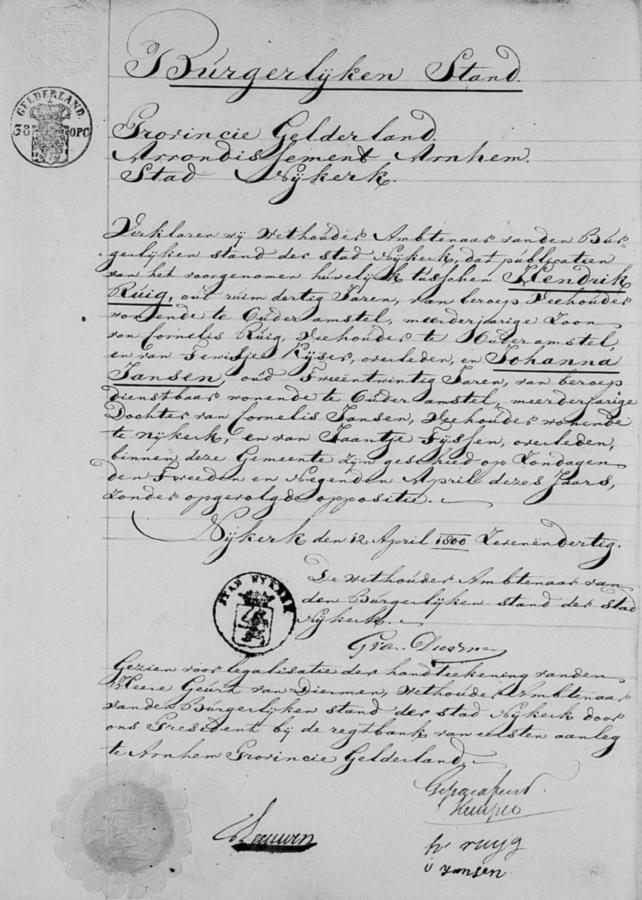 | echtpaar: | Hendrik Ruig en Joanna Kampjes | 15 april 1837 | |