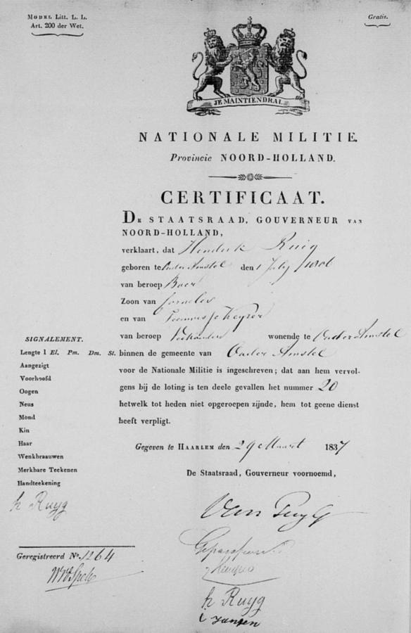| bruidegom: | Hendrik Ruig Veehouder te Ouder-Amstel[Nh] op 15 april 1837 | 15 april 1837 | |