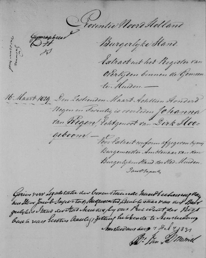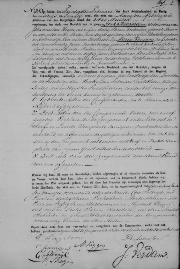 | bruidegom: | Dirk Hogeboom Veehouder te Muiden[Nh] op 20 februari 1830 | 20 februari 1830 | |