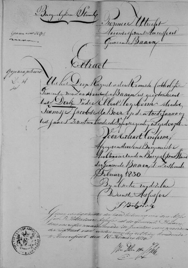 | vader bruid: | Cornelis Jansen Kampjes Veehouder te Nijkerk[Ge] op 20 februari 1830 | 20 februari 1830 | |