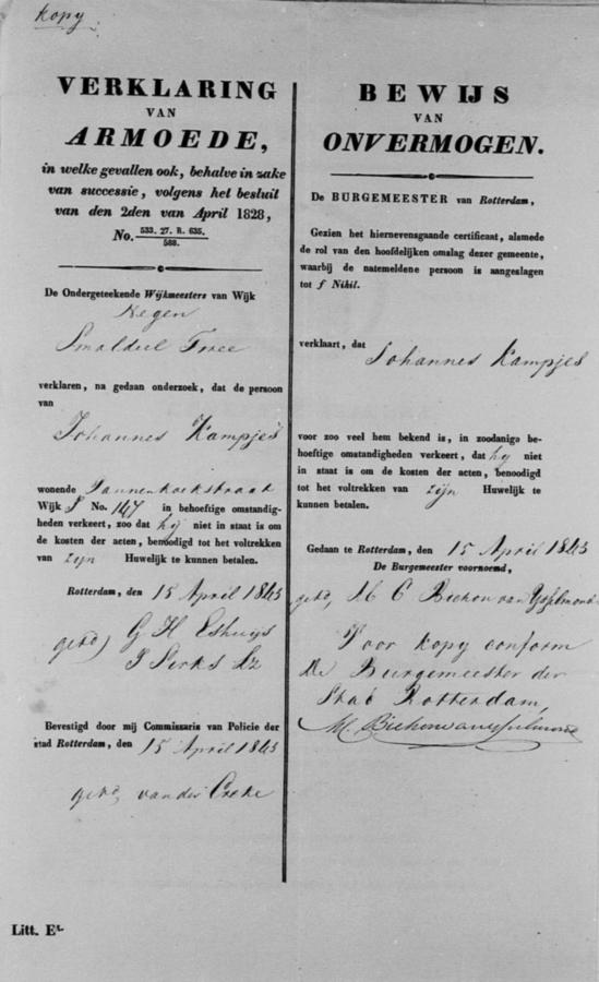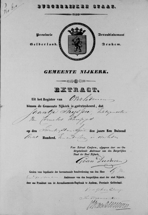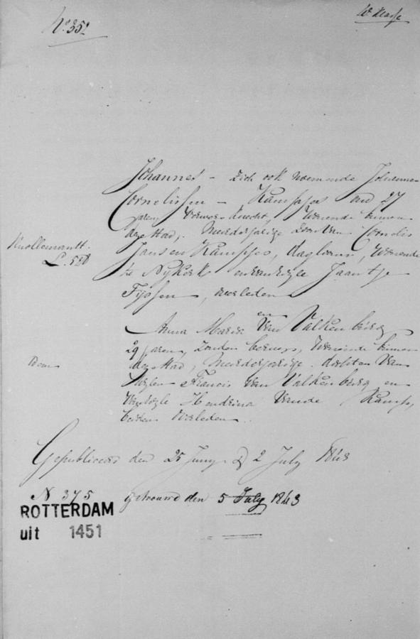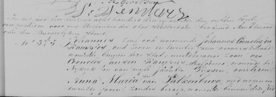 | bruidegom: | Johannes Kampjes | 5 juli 1843 | geschr. als Johannes Cornelissen Kampjes |
