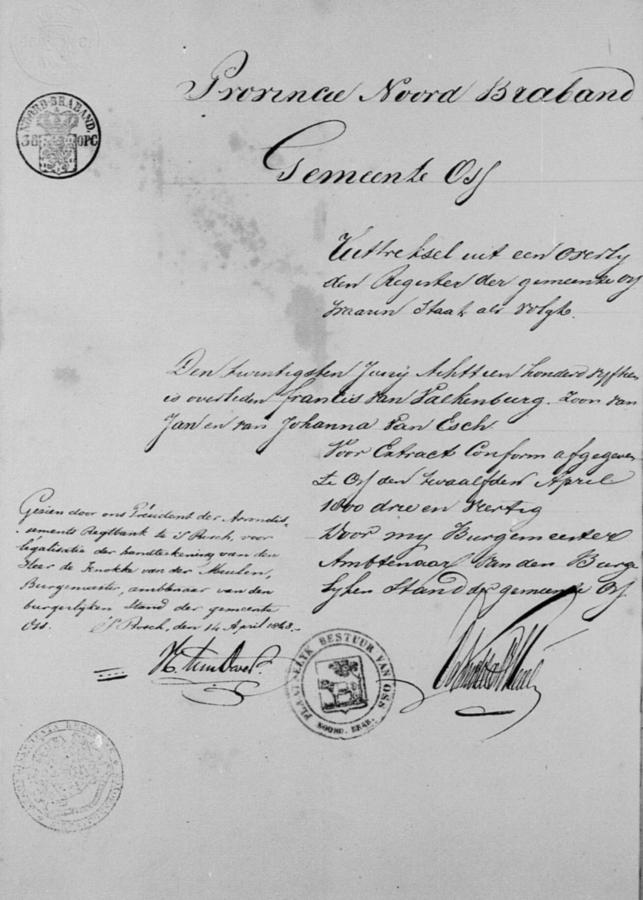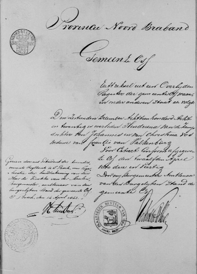 | vader bruid: | Franciscus van Valkenburg | 5 juli 1843 | geschr. als Francis van Valkenburg |